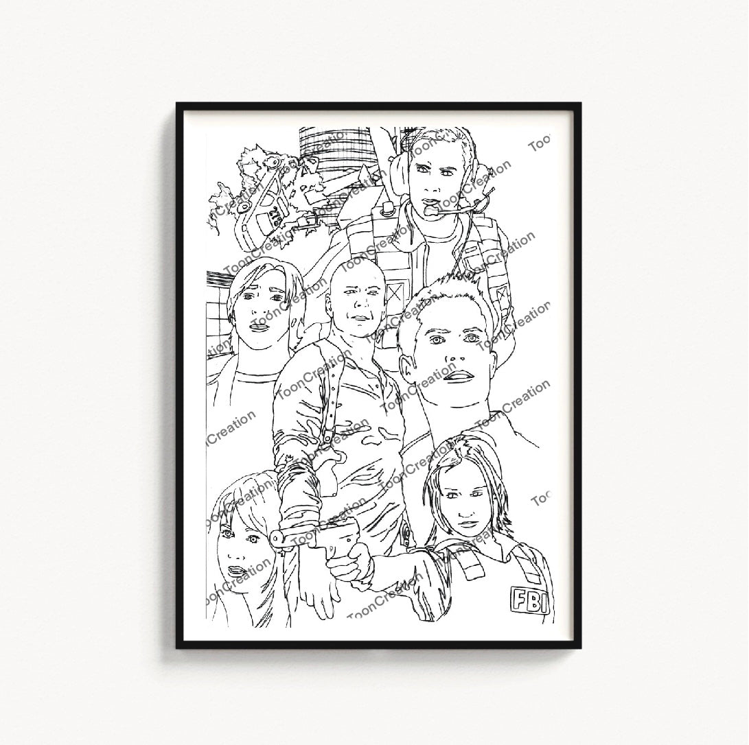 Nous retrouvons sur cette affiche, Bruce Willis, Justin Long, Timothy Olyphant, Maggie Q, Mary Elizabeth Winstead & Cyril Raffaelli
