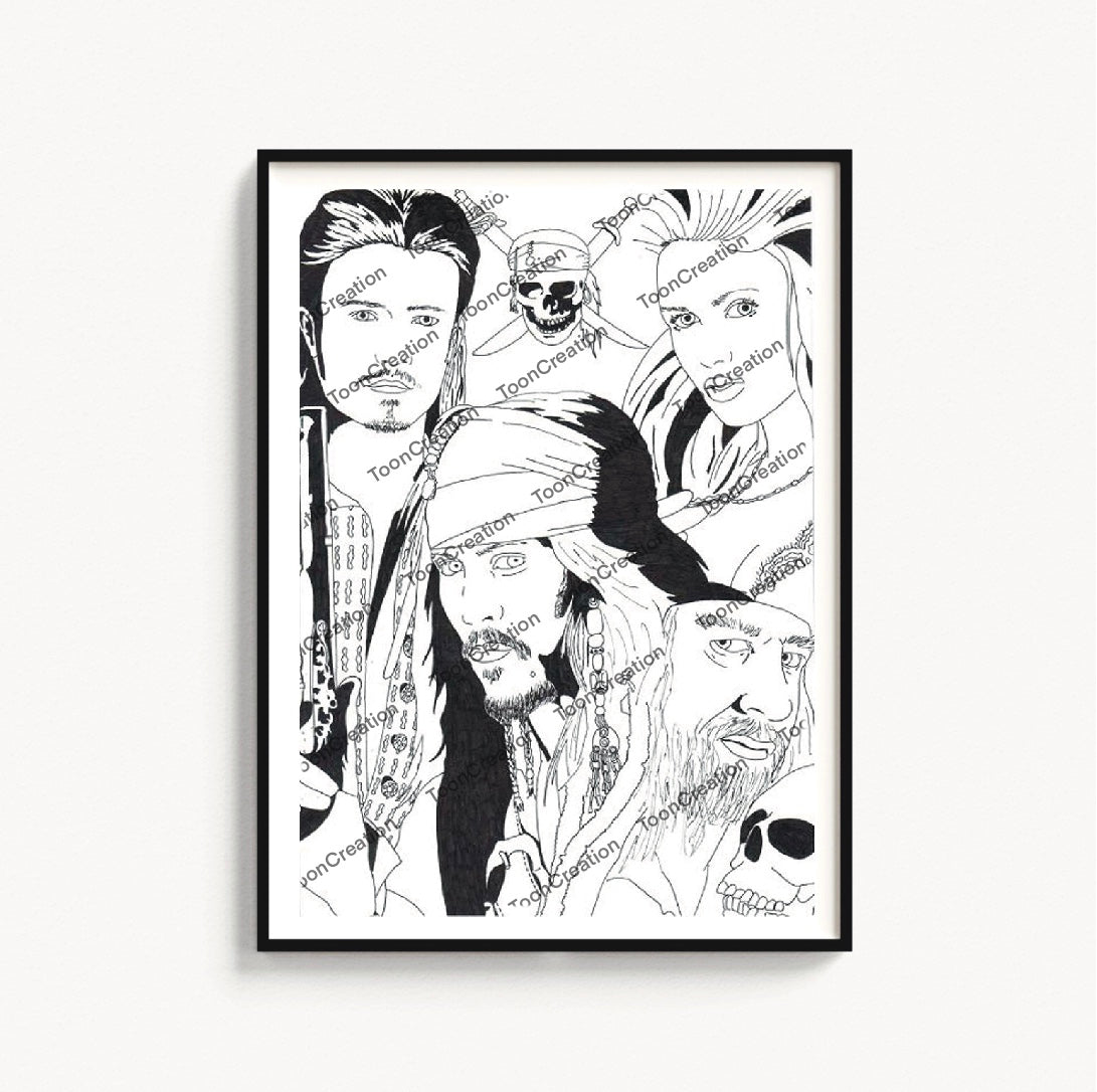 Nous retrouvons sur cette affiche, Johnny Depp, Orlando Bloom, Keira Knightley & Geoffrey Rush